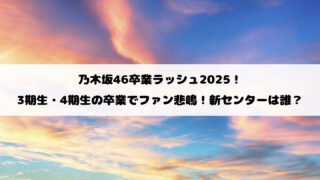 2025年は乃木坂46の卒業ラッシュ。3期生・4期生の卒業発表が続き、ファンに衝撃が走る中、6期生の新センター誕生で新章がスタート。世代交代の全貌を詳しく解説します。